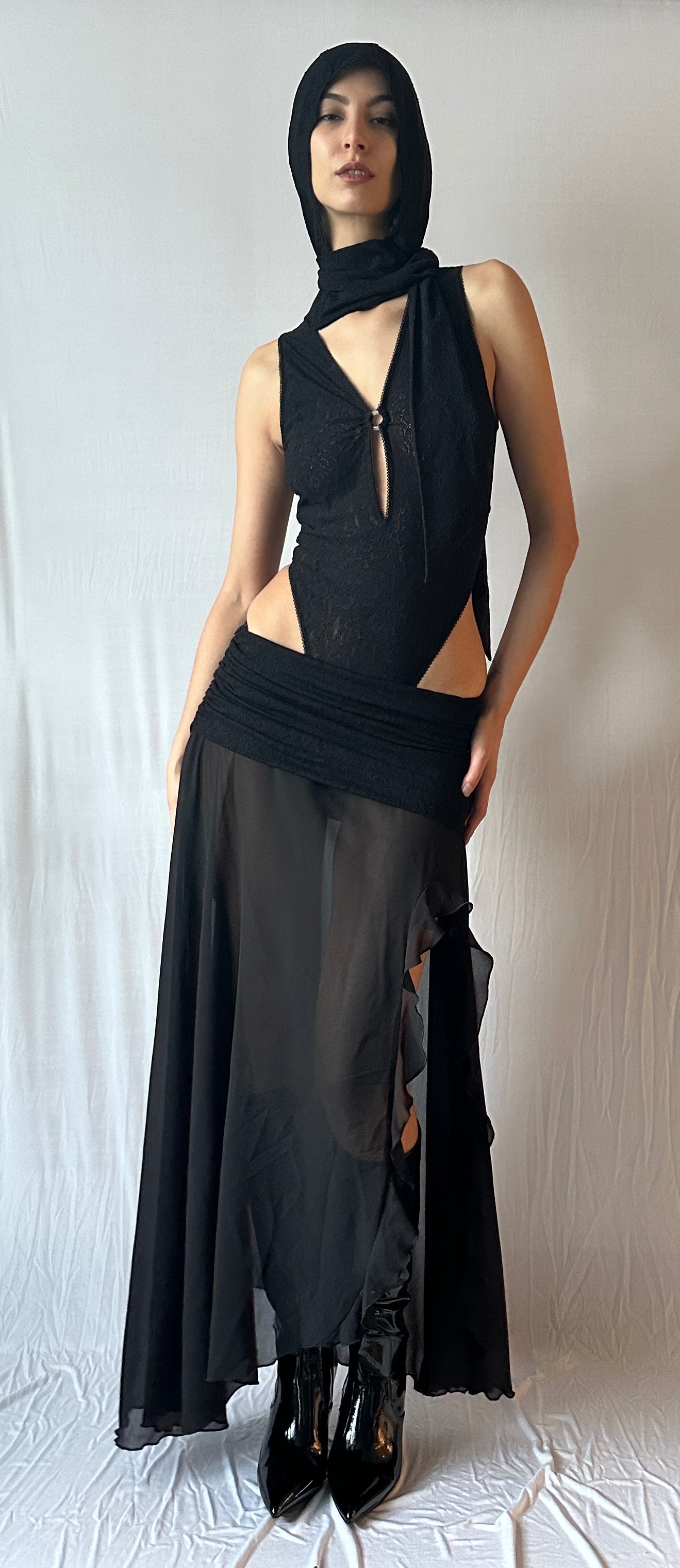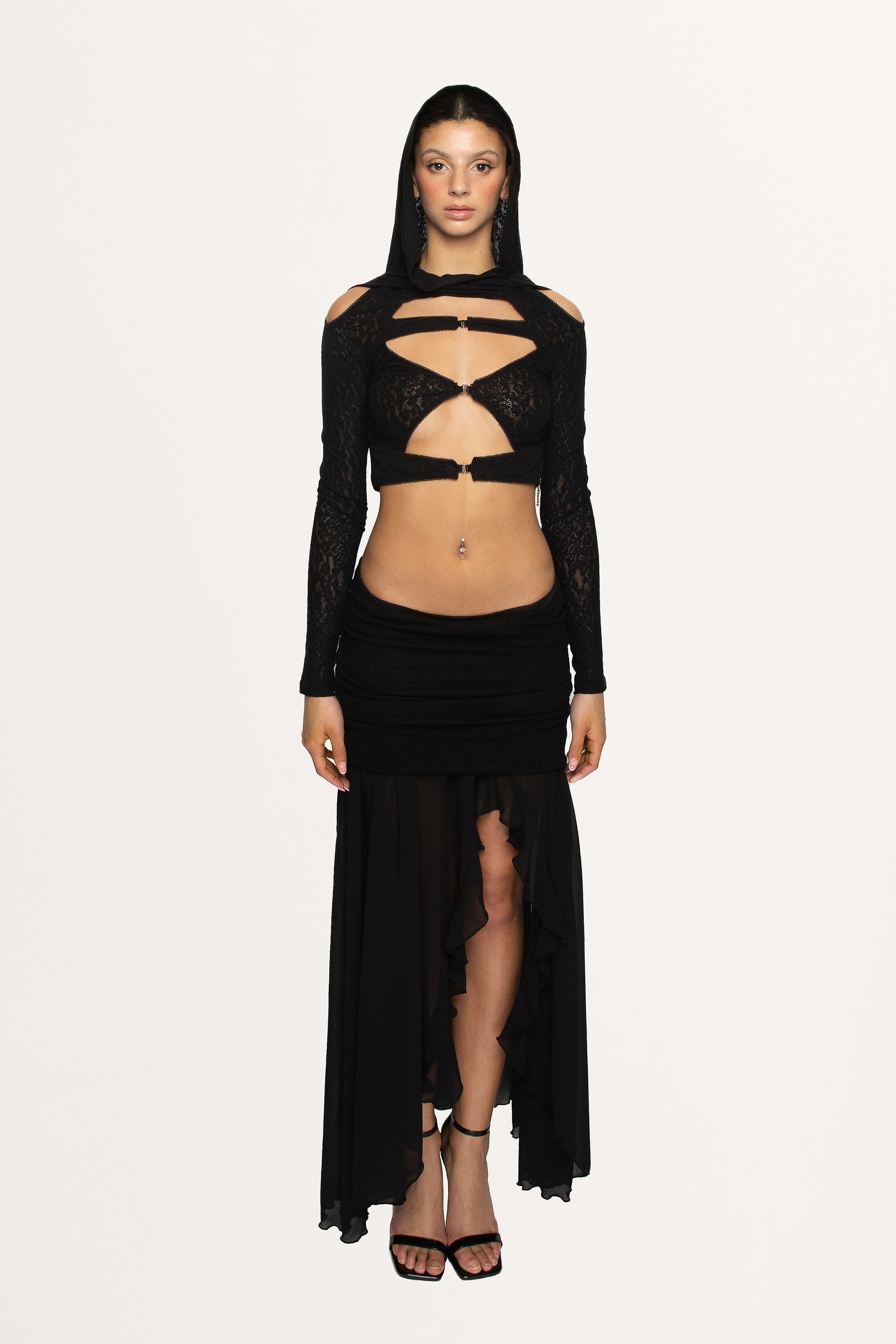 BLACK LACE MAXI SKIRT