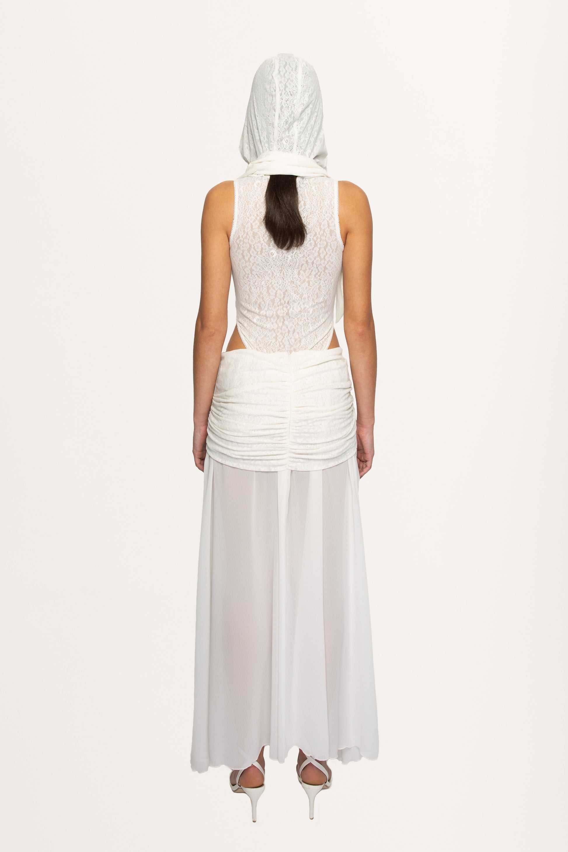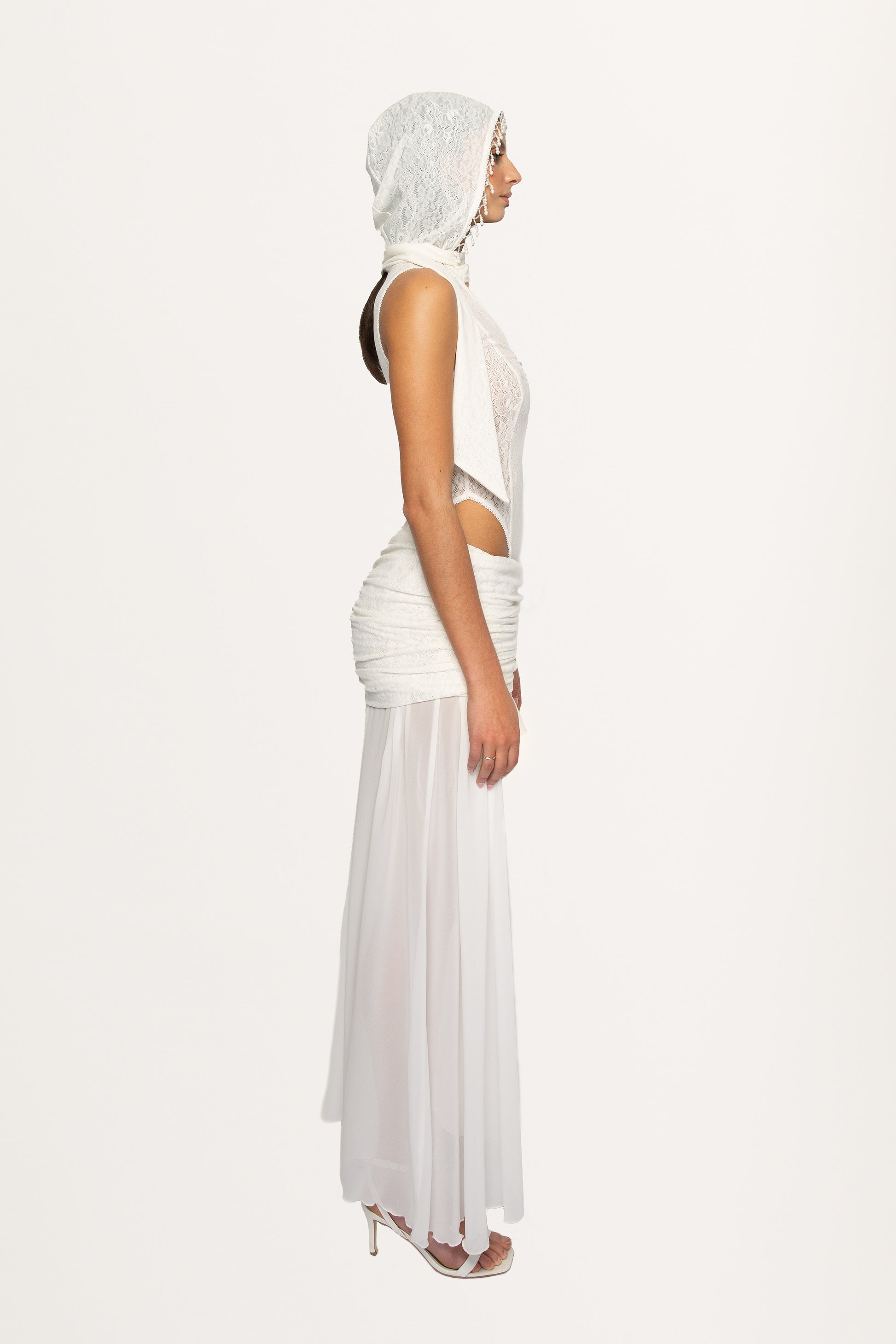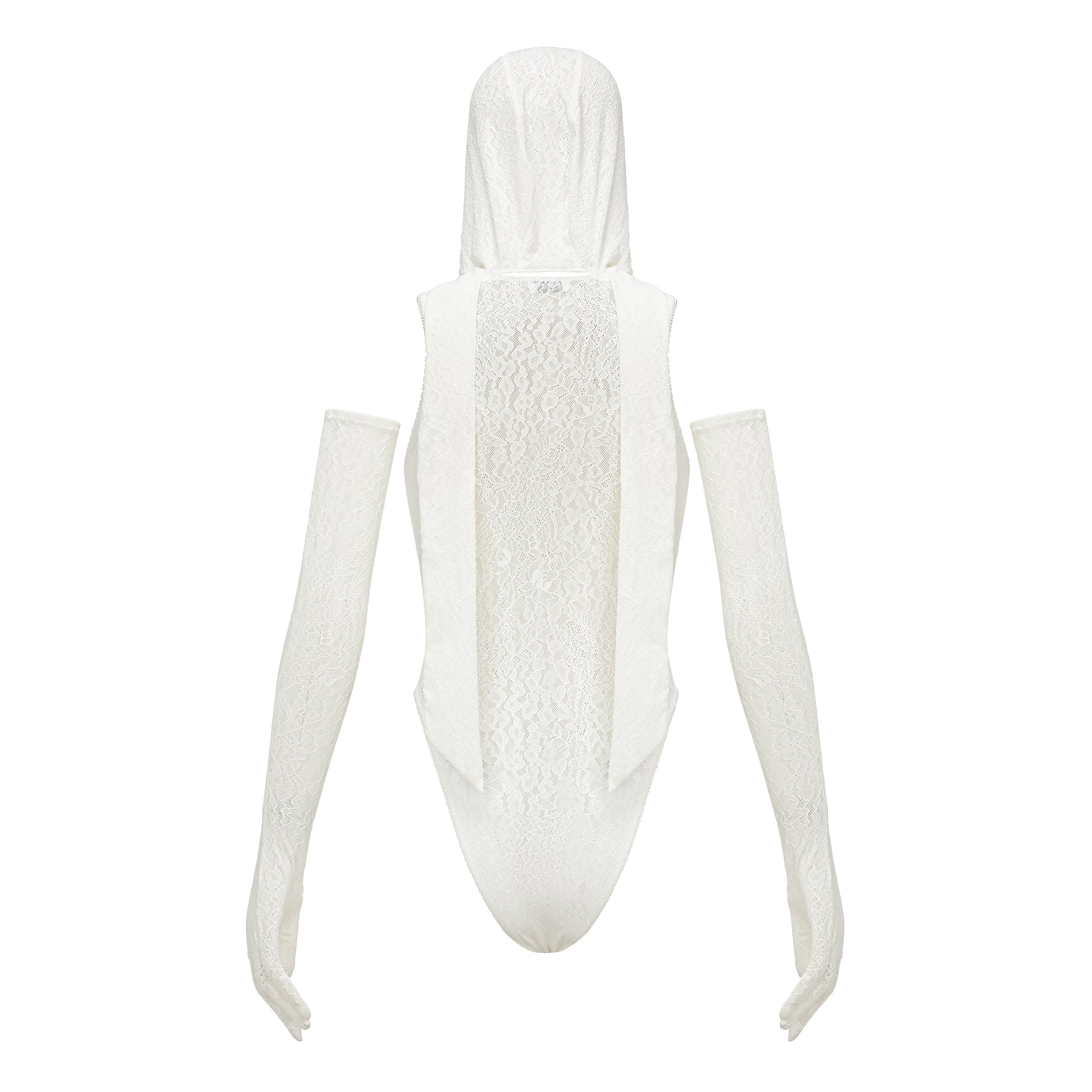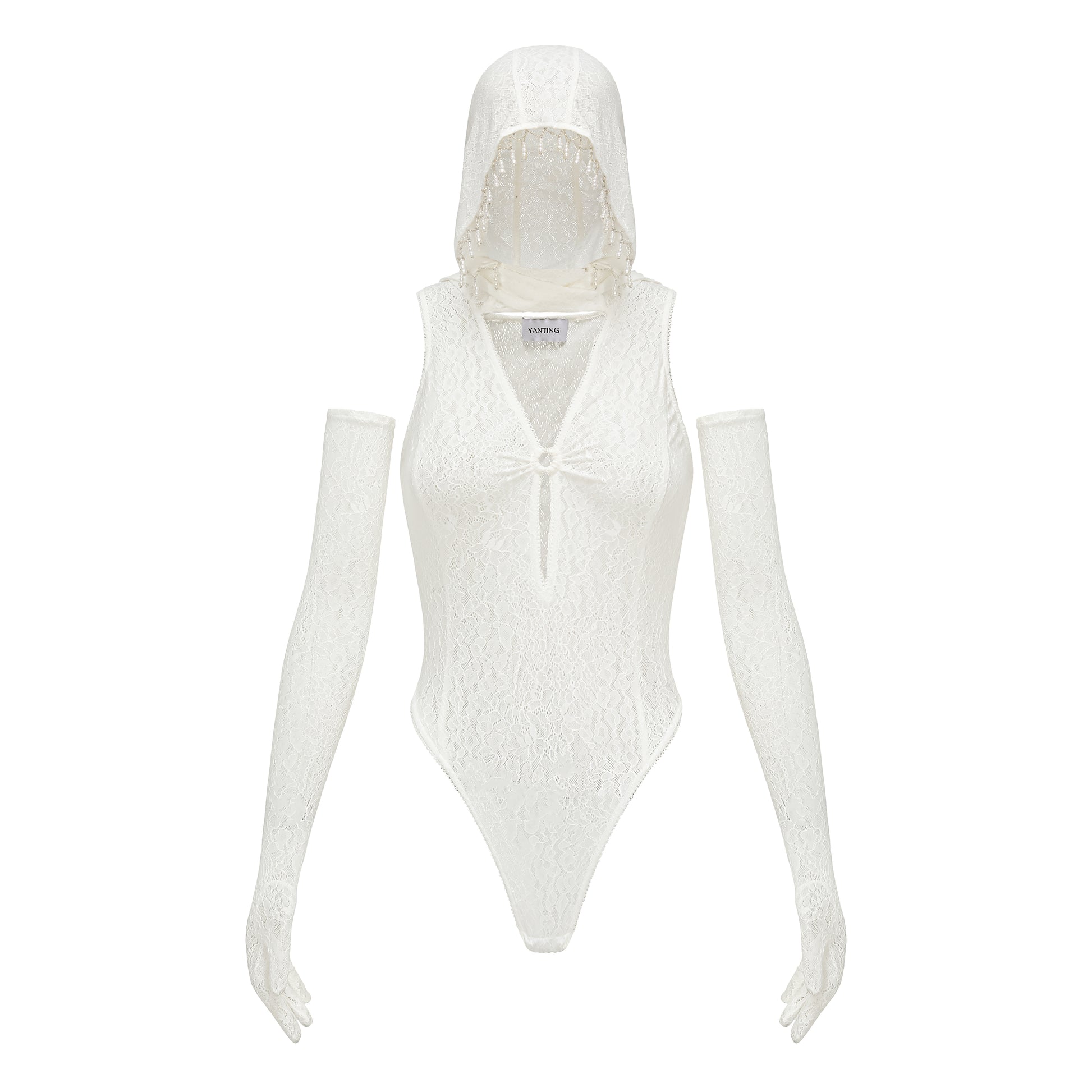 WHITE HOODED LACE BODYSUIT WITH PEARLS